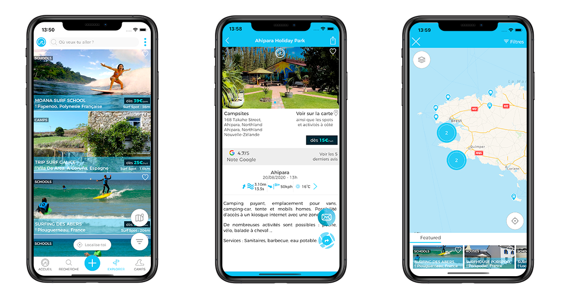 - Les notifications pushs vous alertent en temps réel de l’ajout de nouvel établissement, nouveau spot, nouveau surfcamp organisé.